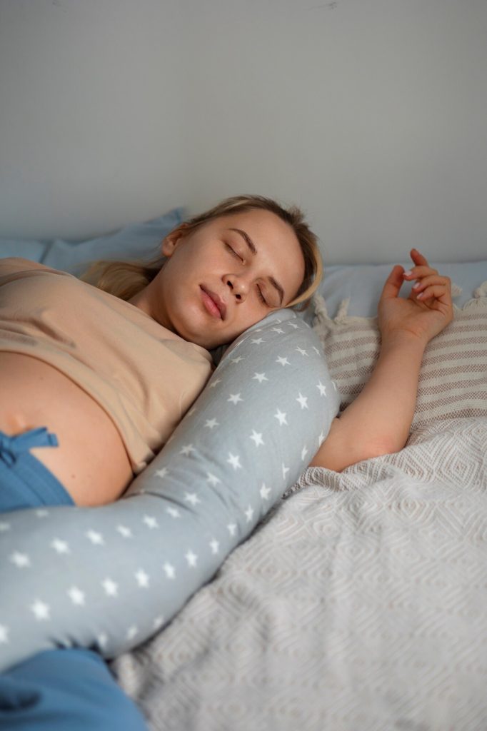 2. Usa almohadas estratégicamente, las almohadas para embrazadas con forma de C o U pueden ser una gran aliadas. Si no tienes una, coloca una almohada entre las rodillas, otra debajo de la barriga y una tercera detrás de la espalda para soporte adicional. Esto ayuda a linear la columna y combatir el insomnio en el embarazo primer trimestre.