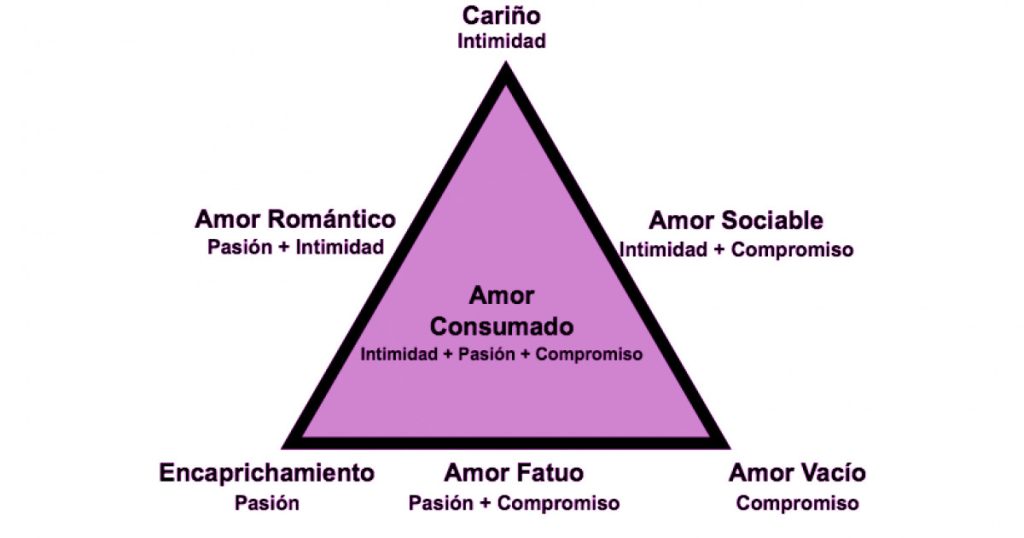 Esta teoría fue descrita por Robert Sternberg, (1986). Explica que el amor está compuesto por 3 cualidades que se pueden manifestar en cualquier relación amorosa basada en el respeto y la funcionalidad. Estos tres elementos están mezclados entre sí, pero es importante poder entender para reconocer mejor los matices y ayudar en las relaciones o los tipos de relaciones que se quiere mantener. No es solo desde una pareja feliz, sino desde las relaciones interpersonales.