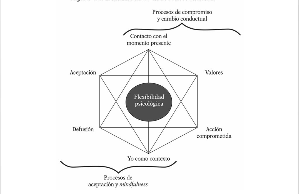 La ACT se basa en una serie de principios. Estos procesos conforman el modelo de los seis procesos básicos que representan El Hexaflex, un esquema que muestra cómo estos componentes interactúan para poder fortalecer la capacidad de adaptación del individuo.